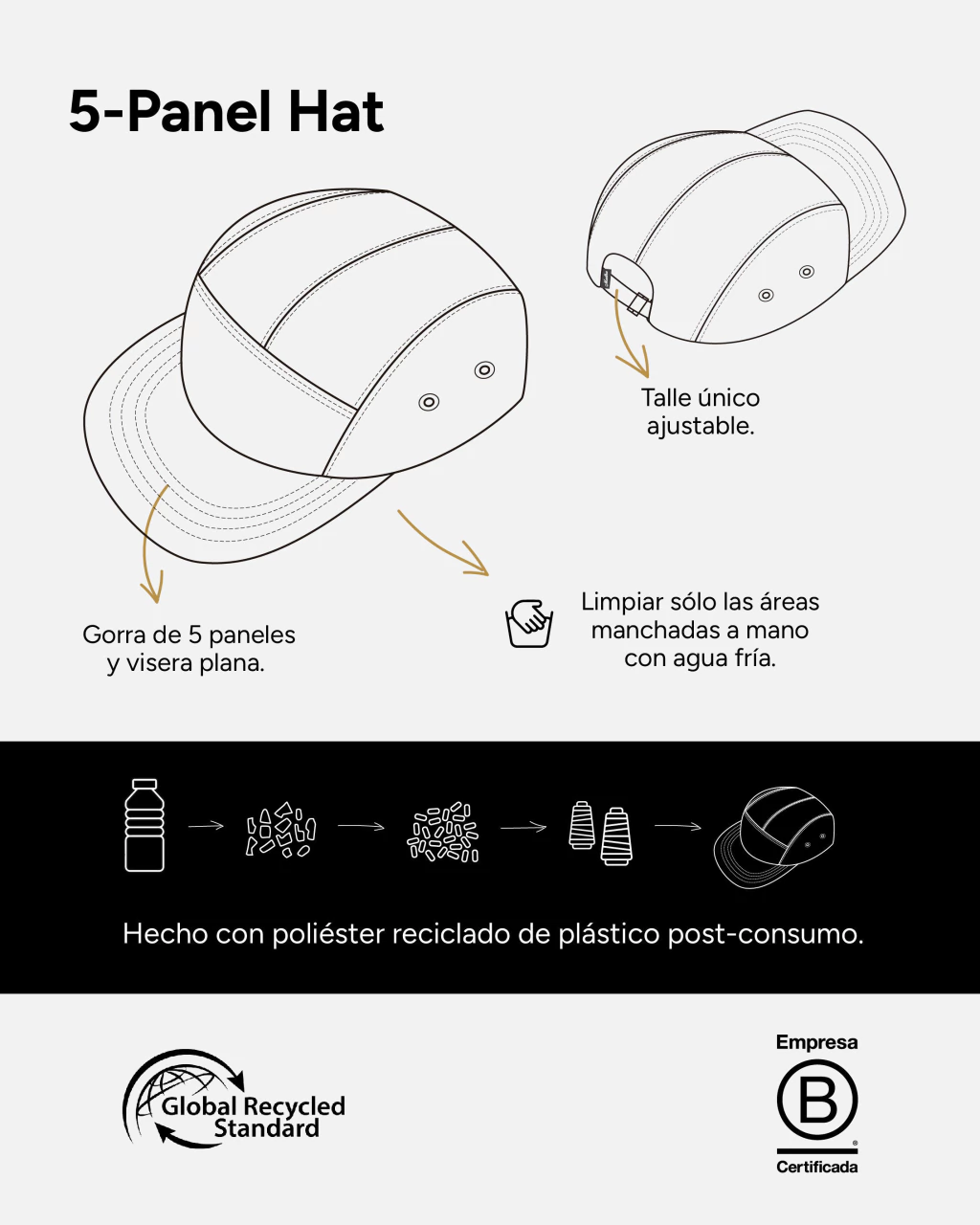 La tela y la visera están hechas con plástico reciclado post-consumo.