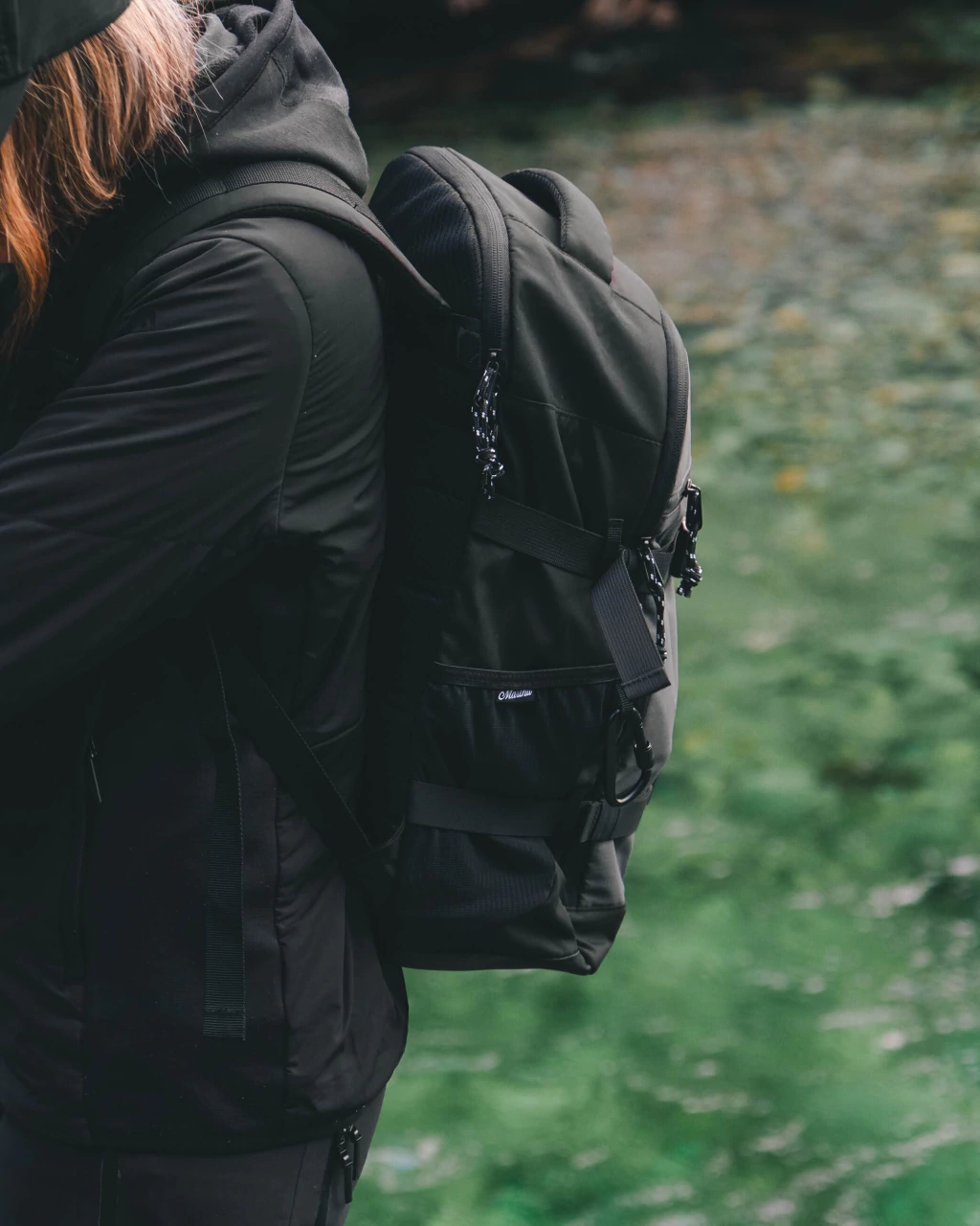 Mochila con capacidad de 28 litros color verde y negro. El cuerpo es de oxford y ripstop repelentes al agua, y la base está reforzada con poliéster PVC. Las tiras y la base están acolchadas con foam para mejor soporte. El bolsillo principal tiene apertura total con acceso tipo valija.
