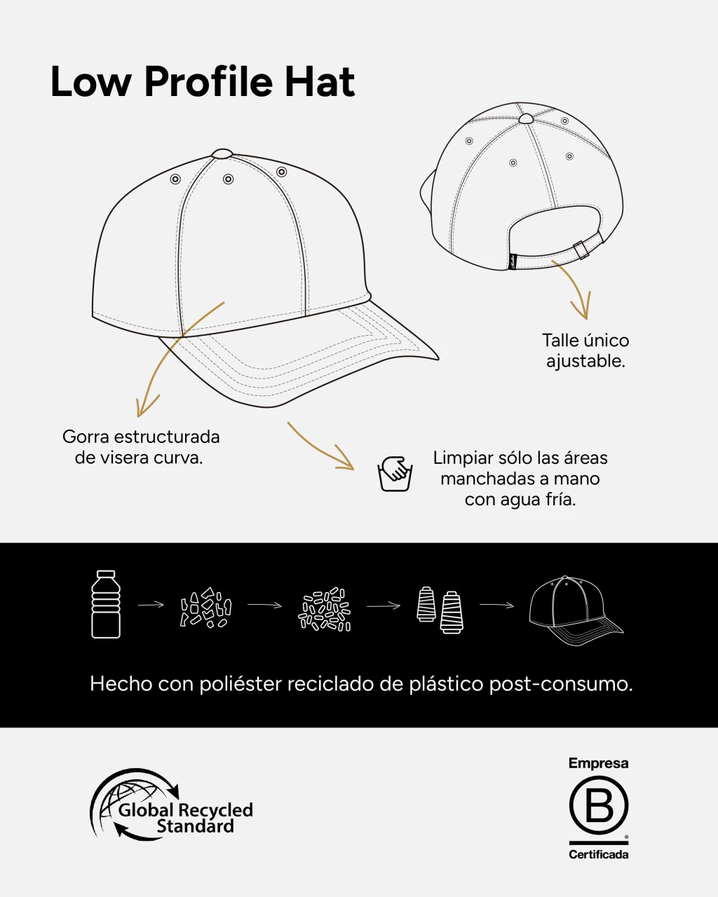 La tela y la visera están hechas con plástico reciclado post-consumo.