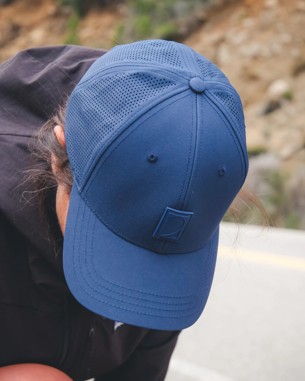 Diseñada para acompañarte en movimiento. Esta gorra estructurada color azul está confeccionada en tela deportiva liviana. Su visera es curva y los paneles laterales y traseros están microperforados para mayor respirabilidad. Ajustable. Altura de la corona baja.